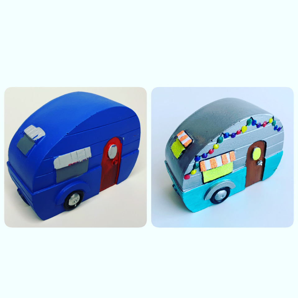 Last week I shared a photo of this little camper I picked up at the Dollar Tree on social media, as I was thinking about giving it a new paint job. Today I gave my little camper a makeover! Well, actually TWO campers…I really got two of them that day.