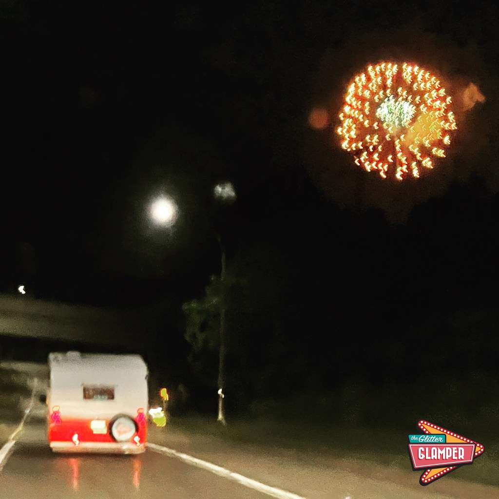 Toby rode home with me as we followed the Glamper home. This was the first time I haven’t spent the whole day with my family on the 4th, but we had a great celebration on the 3rd, and Toby really enjoyed watching the fireworks on the way home! Being that we were on the road home right when every city’s fireworks were starting, we were able to catch several shows on our drive! While this pic turned out a little blurry while driving, I think it was a great shot to end the night!